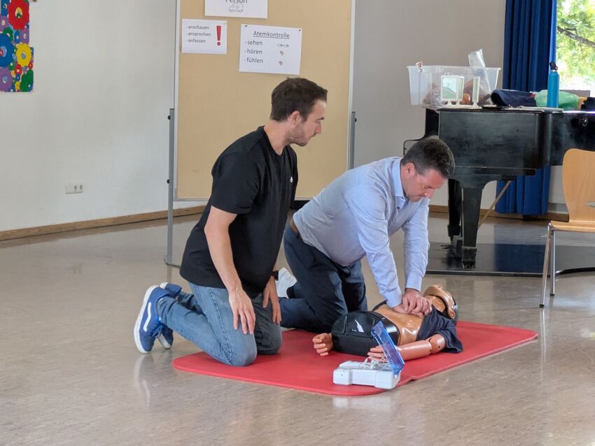 Alle Lehrerkräfte der Mittelschule Wörth haben ihre Erste-Hilfe-Kenntnisse erneuert. Vor allem praxisnahe Situationen standen im Vordergrund. Besonderen Dank gilt dabei Dominic Sier, der den 10-stündigen Kurs durchführte.